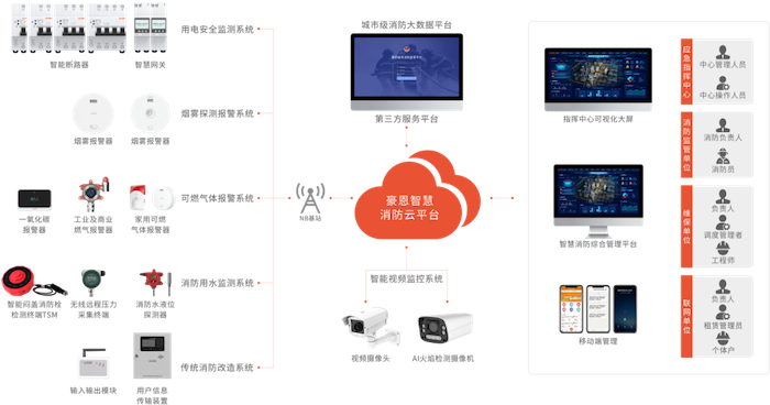 House wisdom fire control solutions to cloud platform, with smoke detection alarm, combustible gas alarm, electricity safety monitoring, fire water monitoring system, full use of 5G, big data, cloud computing, artificial intelligence, built by monitoring service center, cloud platform, mobile applications, intelligent equipment of intelligent fire fire prevention and control warning network, water, electricity, smoke, gas, fire, etc, real-time monitoring, let fire hidden danger nowhere dun, through wisdom fire last centimeter, make fire more wisdom, make the city more secure.
