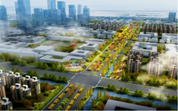 Teng dragon avenue wisdom expressway engineering from Hubei road, north by wujin, bell tower, new north, and Liuzhou avenue, elevated west set communication hub, finally the Yellow River west road south, road 23.9 km, the construction of the project of teng dragon avenue expressway wisdom ring Hubei road to changhong west road section landscape avenue, along the dragon road north, finally changhong west road, about 4.94 kilometers long, the main road design speed of 60 km/h, side road design speed of 40 km/h.
