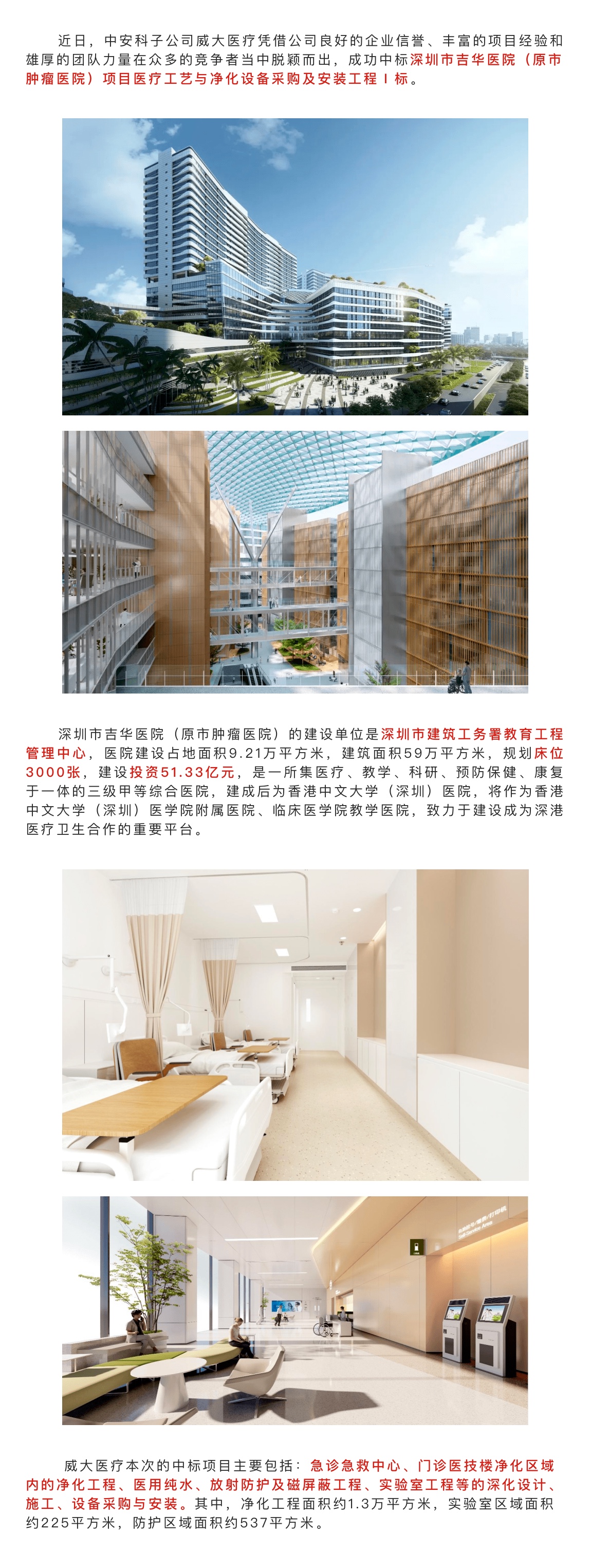 中標(biāo)喜報|中安科子公司威大醫(yī)療成功中標(biāo)深圳市吉華醫(yī)院項目