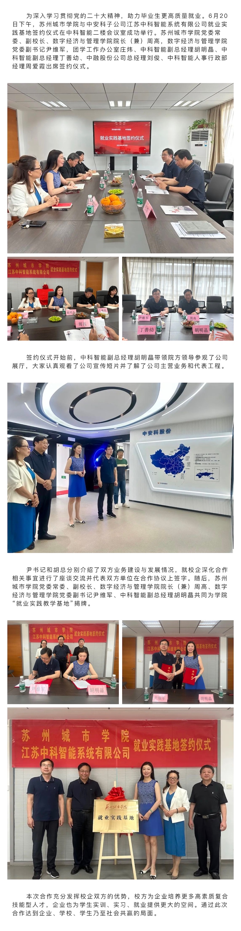 蘇州城市學(xué)院與中安科子公司江蘇中科智能系統(tǒng)有限公司簽約就業(yè)實(shí)踐基地