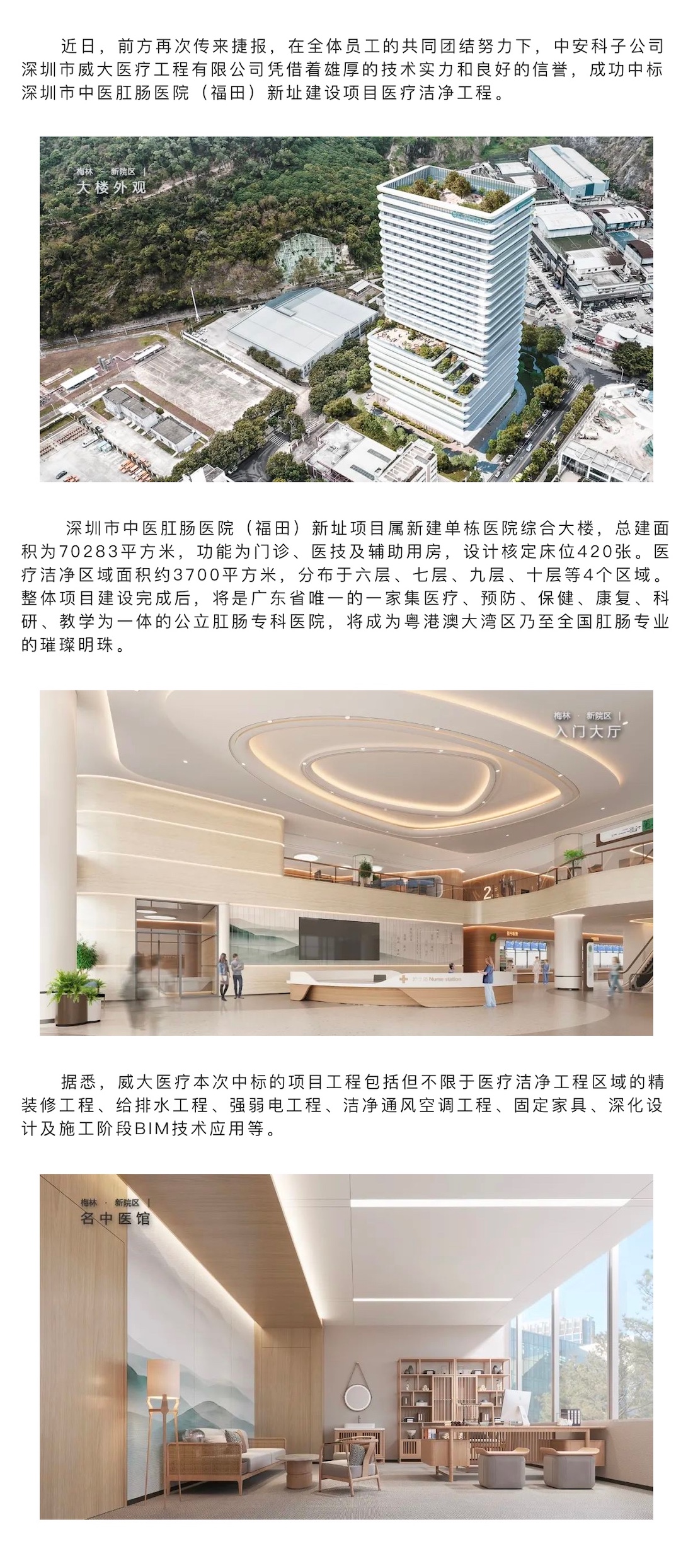 捷報頻傳|中安科子公司威大醫(yī)療中標深圳市中醫(yī)肛腸醫(yī)院(福田)新址建設(shè)項目醫(yī)療潔凈工程
