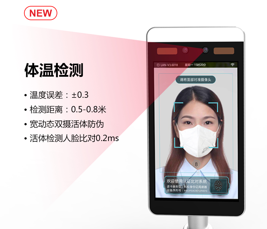 科松,集紅外非接觸式、±0.3℃高精度、高并發(fā)檢測等特點于一身,滿足全過程0接觸、遠(yuǎn)程部署、識別口罩等,可篩查體溫并記錄人員身份信息,實現(xiàn)出入管理、出入留痕、考勤簽到、前臺接待、服務(wù)咨詢等功能,提升服務(wù)品質(zhì),保障場所安全。同時,可達(dá)2米的精準(zhǔn)測溫距離,讓設(shè)備布控與環(huán)境適應(yīng)性更加靈活,有效保護(hù)現(xiàn)場防疫工作人員,及時檢測、阻止異常人員從而達(dá)到整體防疫防控成效。