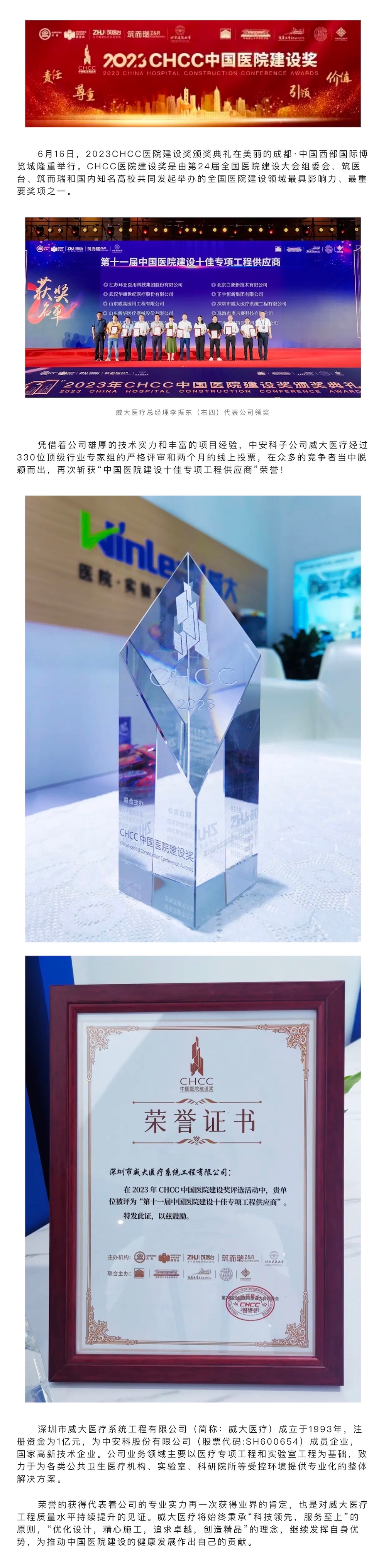 喜訊|中安科子公司威大醫(yī)療再次榮獲“中國(guó)醫(yī)院建設(shè)十佳專(zhuān)項(xiàng)工程供應(yīng)商”殊榮