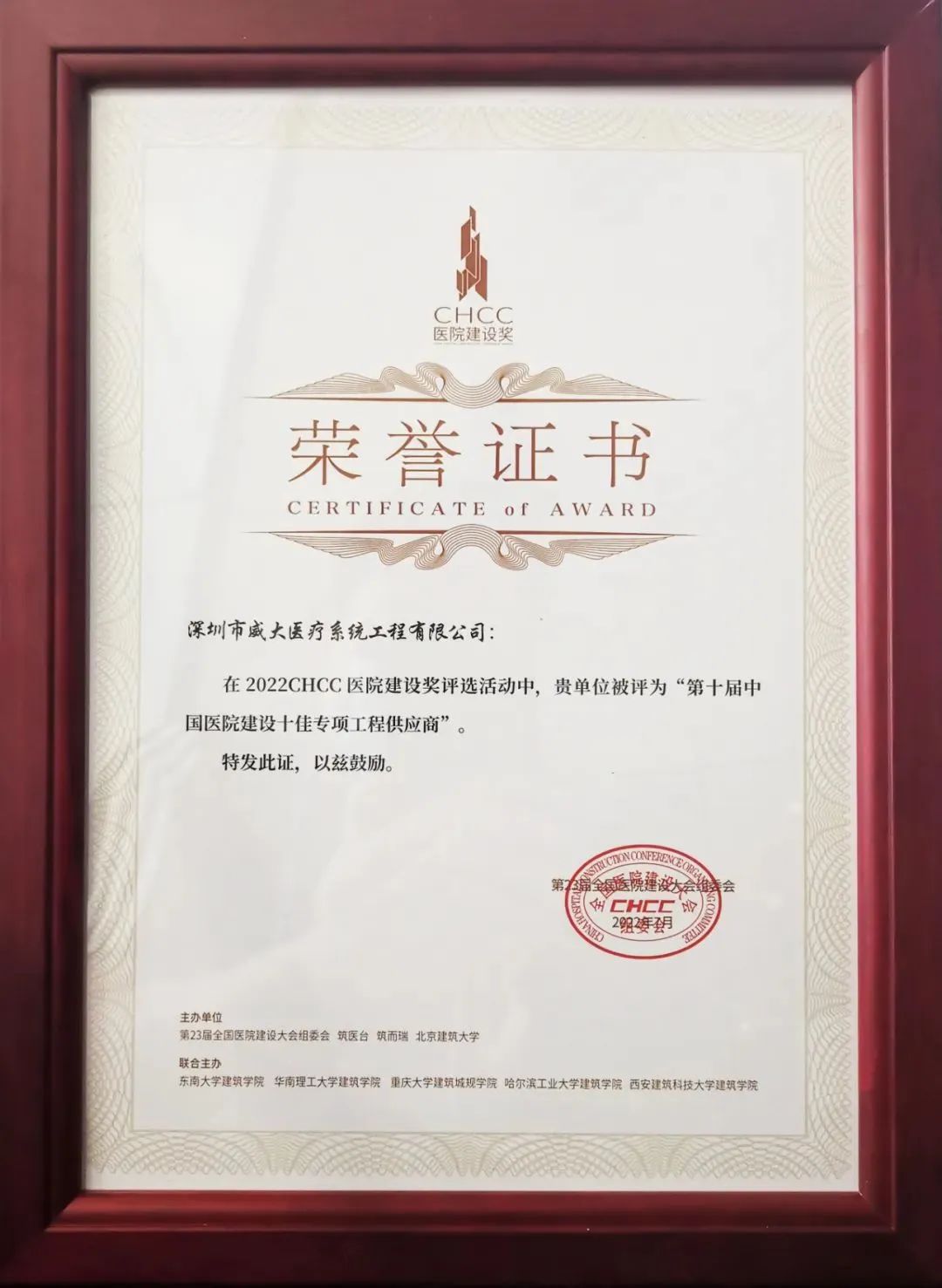 實(shí)力造就非凡——中安科子公司威大醫(yī)療榮獲“第十屆中國(guó)醫(yī)院建設(shè)十佳供應(yīng)商”榮譽(yù)