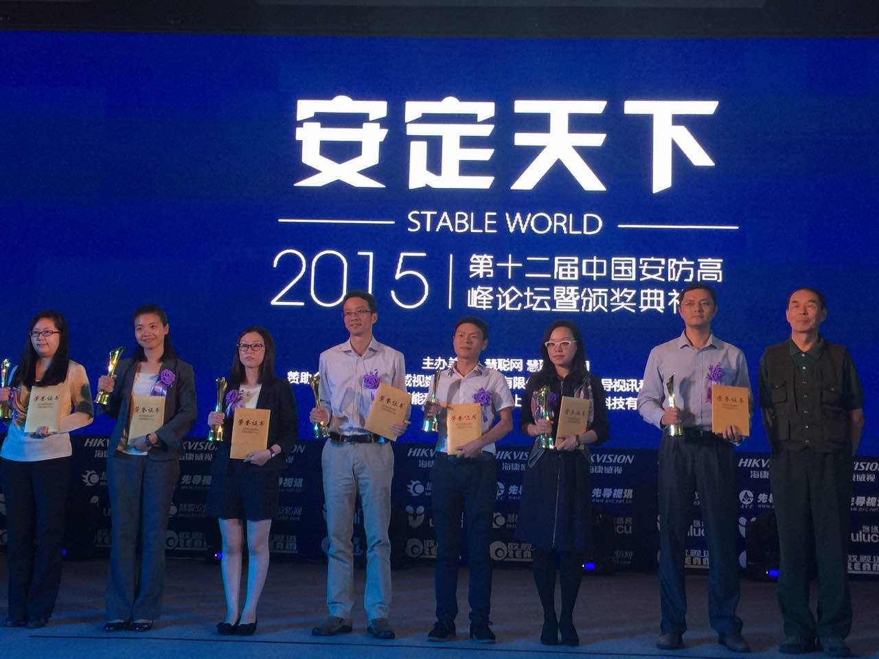 圖1 右2為中安科股份技術(shù)總監(jiān)兼研發(fā)中心總經(jīng)理龔灼先生代表中安消領(lǐng)取“2015安防十大品牌獎”