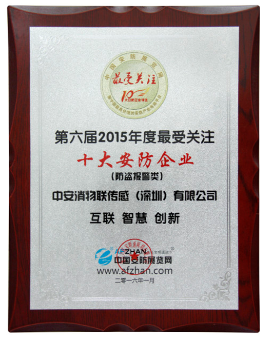 2016年03月29日,第六屆“思正杯”最受關(guān)注十大安防企業(yè)評(píng)選頒獎(jiǎng)盛典暨第二屆中國(guó)安防新產(chǎn)品/新技術(shù)研討會(huì)在杭州拉開(kāi)序幕。中安消物聯(lián)傳感(深圳)有限公司(以下簡(jiǎn)稱(chēng)“中安消物聯(lián)傳感”)在本次活動(dòng)中榮獲“2015年度最受關(guān)注十大安防企業(yè)(防盜報(bào)警類(lèi))”稱(chēng)號(hào)。