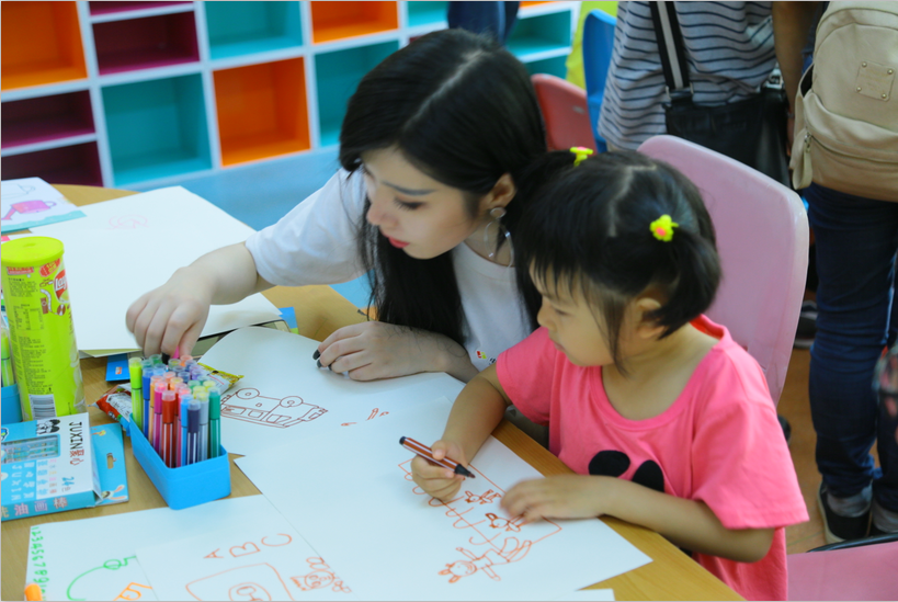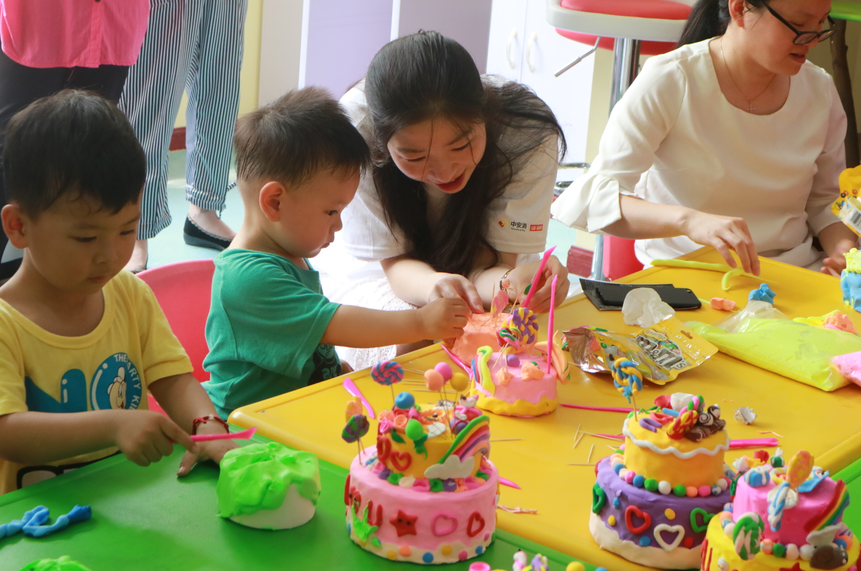 中安科愛(ài)心團(tuán)隊(duì)的志愿者們陪孩子們做各種手工活動(dòng)