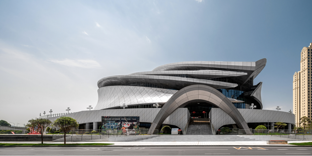 寶雞大劇院是寶雞的核心地標(biāo)式建筑之一,設(shè)計凸顯了寶雞精神中“聞雞起舞、開放創(chuàng)新”的元素,將鳳凰作為建筑的主要靈感來源之一,從空中鳥瞰寶雞大劇院,其屋頂流線像是三片鳳凰羽翼,隨河邊的清風(fēng)漂浮在城市之中。