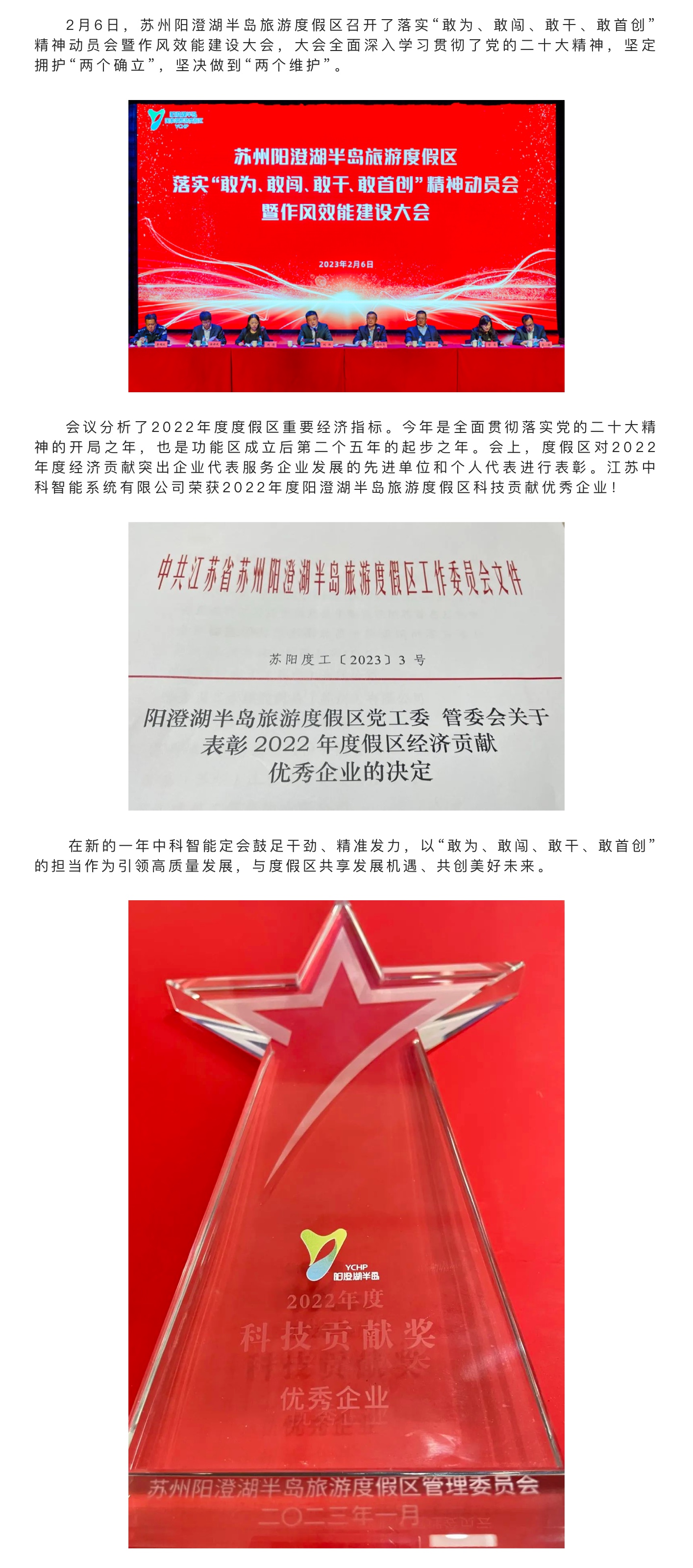 喜報!中安科子公司——江蘇中科智能榮獲2022年度陽澄湖半島旅游度假區(qū)科技貢獻獎