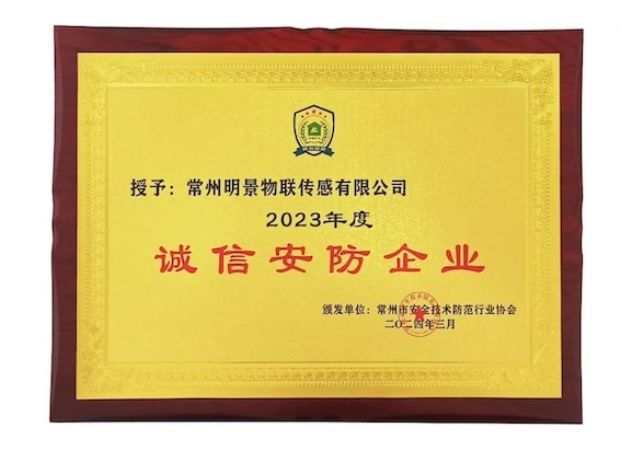 中安科子公司常州明景物聯(lián)傳感有限公司榮獲“2023年度誠(chéng)信安防企業(yè)”及"2023年度常州安防行業(yè)優(yōu)秀安防產(chǎn)品”榮譽(yù)稱號(hào)。