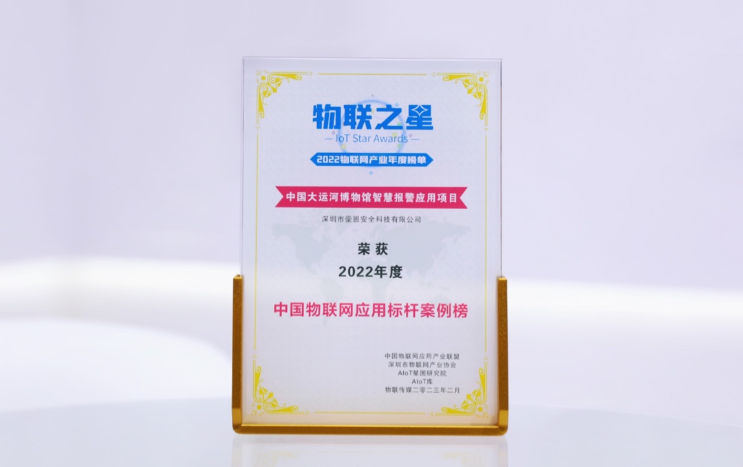 經過多月的激烈角逐,中安科子公司豪恩的中國大運河博物館智慧報警應用項目,從數百余家參評企業(yè)中脫穎而出,榮登2022“物聯之星”年度榜單之「中國物聯網應用標桿案例榜」,成為豪恩博物館安防報警解決方案中的典型代表案例。