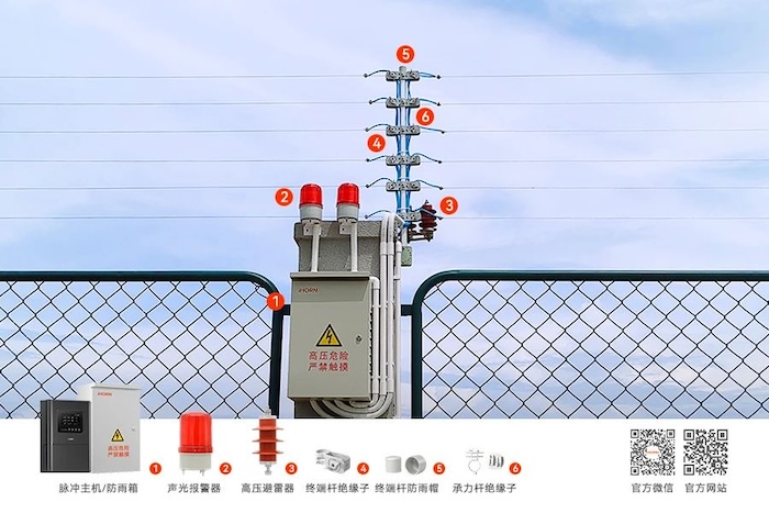 如遇強(qiáng)行入侵,電子圍欄將給予安全能量范圍內(nèi)的脈沖高壓打擊,警告非法入侵者,動搖其攀越圍欄的能力與動機(jī)。同時,系統(tǒng)現(xiàn)場發(fā)出高分貝聲鳴報警,并與其它安防系統(tǒng)聯(lián)動(如報警主機(jī)、監(jiān)控系統(tǒng)等),從而達(dá)到安全阻擋目的。
